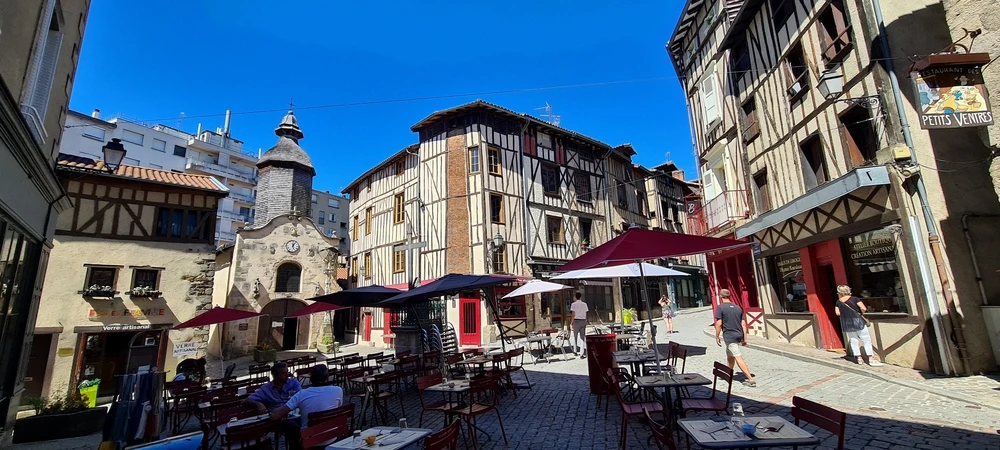 Medieval immersion guaranteed in the quartier de la Boucherie, picturesque with its half-timbered houses, narrow alleyways and chapelle Saint-Aurélien. Rue de la Boucherie (La Bocharia in Occitan), the memory of a very active guild from the Middle Ages to modern times is perpetuated; the traditional Maison de la Boucherie recounts the gestures, tools and sociability of a long-popular neighborhood. Don't miss the neighboring Halles for the marché: here you'll find the gourmet spirit of a capital of Limousin renowned for its limousine beef, fine and "au beau grain". In the evening, head up to the place de la Motte for the atmosphere of the terraces and the highlighted timber-framed facades.