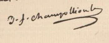 La signature de Champollion: By Etienne Charavay (1846-1899) - Lettres autographes composent la collection de M. Alfred Bovet, décrits par Étienne Charavay (1846-1899). Printed under the direction of Fernand Calmettes Author: Charavay, Étienne 1887 public domain Identifier: ark:/12148/bpt6k6325943w S Bibliothèque de l'INHA / coll. J. Doucet, 2012-104400, Domaine public, https://commons.wikimedia.org/w/index.php?curid=76672460