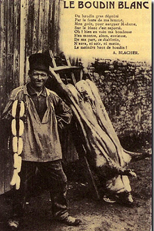 Bien avant de se glisser dans un boyau, le boudin blanc était une simple bouillie de Noël, mélange de lait, de pain, d’épices et parfois de viande. Cette préparation réconfortante était servie après la messe de minuit, symbole d’abondance et de douceur en plein hiver. François Massialot, célèbre cuisinier du XVIIᵉ siècle, mentionne déjà cette recette dans Le Cuisinier royal et bourgeois (1691), où il conseille de “faire bouillir une bouillie au lait et de dindon gras”. C’est au siècle des Lumières qu’un charcutier a l’idée de mettre cette farce dans un boyau, donnant naissance au boudin blanc moderne : une charcuterie fine, légère et festive. Le boudin blanc devient vite un symbole de réjouissance : on le sert à Noël, à Pâques ou lors des banquets d’hiver. Dans les Ardennes, à Rethel, les charcutiers le perfectionnent jusqu’à en faire un produit noble et délicat, reconnu par une IGP (Indication Géographique Protégée).