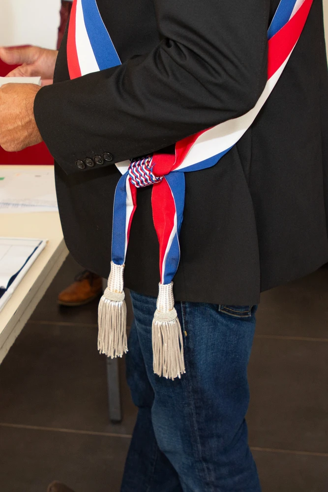 Les conseillers municipaux français sont identifiés par leur écharpe tricolore à pompons argentés (dorés pour le maire) / Photo sélectionnée par Monsieur de France ; depositphotos