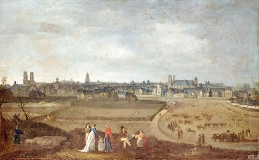 Rennes in 1800 / illustratie gekozen door Monsieur de France : Musée des Beaux Arts de Rennes Door Jean Loyer - http://www.photo.rmn.fr/cf/htm/CPicZ.aspx?E=2C6NU07ZKNQ3 8 november 2013, 16:22:30, Publiek domein, https://commons.wikimedia.org/w/index.php?curid=29491516