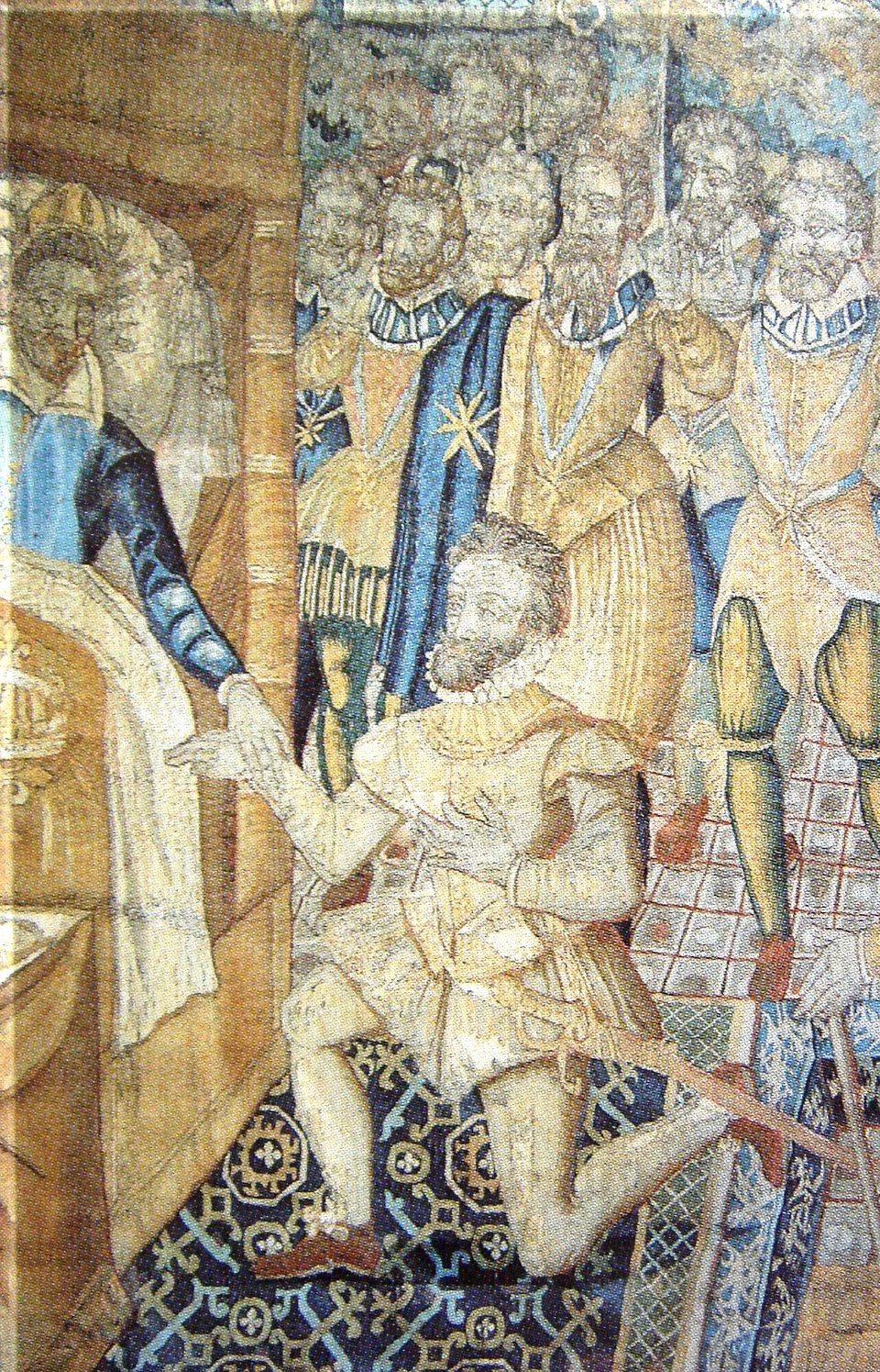 Op zijn sterfbed in Saint Cloud benoemt Hendrik III zijn neef Hendrik van Navarra, een protestantse prins, tot zijn opvolger / Door Anoniem 16e-eeuws wandtapijt — "Catherine de Medicis en Hendrik III" Historia, Publiek domein, https://commons.wikimedia.org/w/index.php?curid=10347879