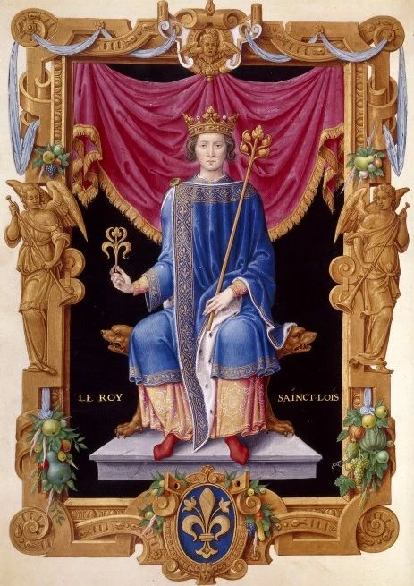 Lodewijk IX of Sint Lodewijk naar een miniatuur uit het Recueil des rois de France van Jean du Tillet (ca. 1547), BnF. via gallica.fr